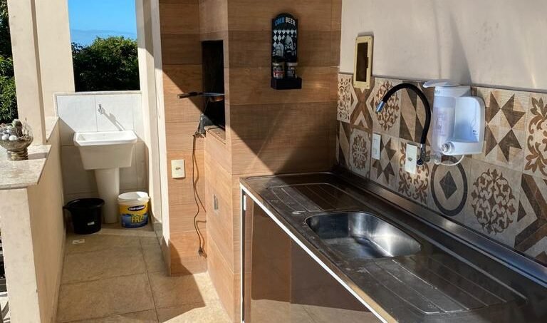 A casa fica em Meaípe – Guarapari/ES. Além disso, está a cerca de 500 m da praia e perto de restaurantes, mercados e comércio da região.