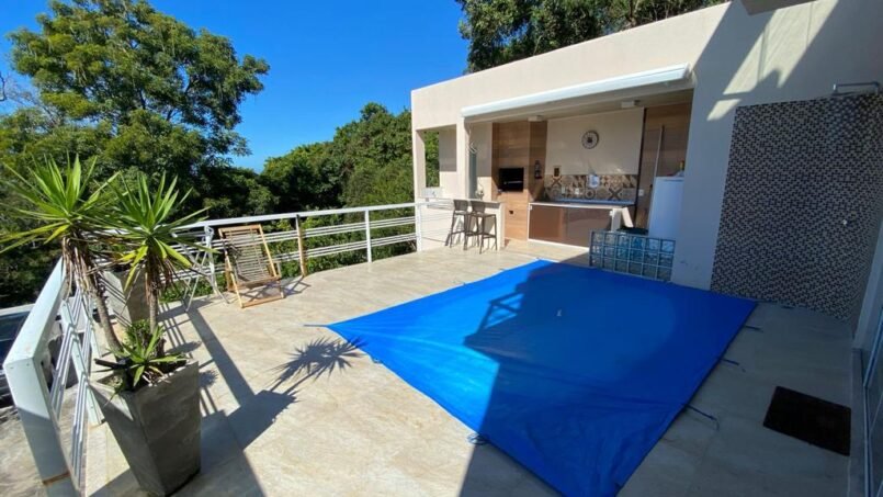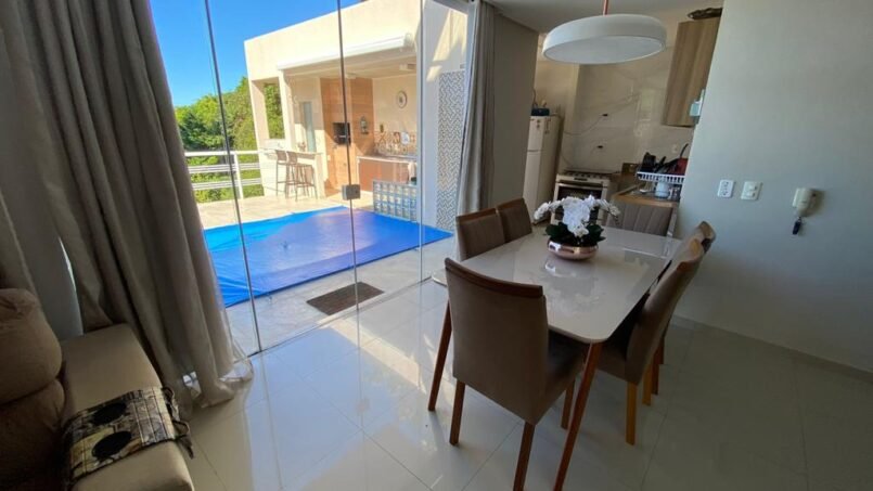 Conta com ar-condicionado em todos os quartos, piscina e área gourmet com churrasqueira. Para completar, há garagem para 3 carros.