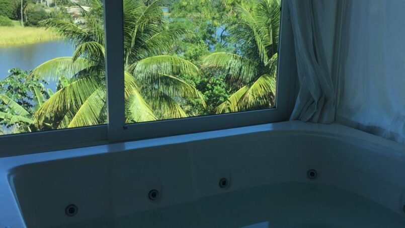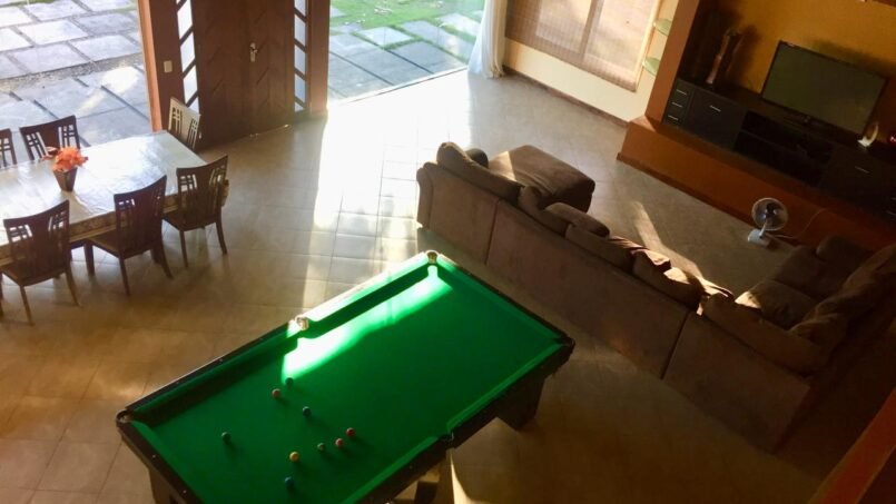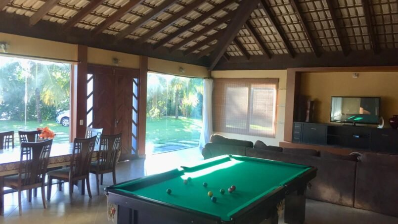 Com 1.500 m² de área construída em meio à natureza, a mansão também oferece garagem para até 8 carros, home theater e quitinete nos fundos da casa. Além disso, está a apenas 5 km do centro de Guarapari, e perto da Pedreira, onde acontecem shows e esportes radicais. Portanto, a Mansão Lagoa Mãe-Bá é o lugar perfeito para quem busca luxo, conforto e contato direto com a natureza.